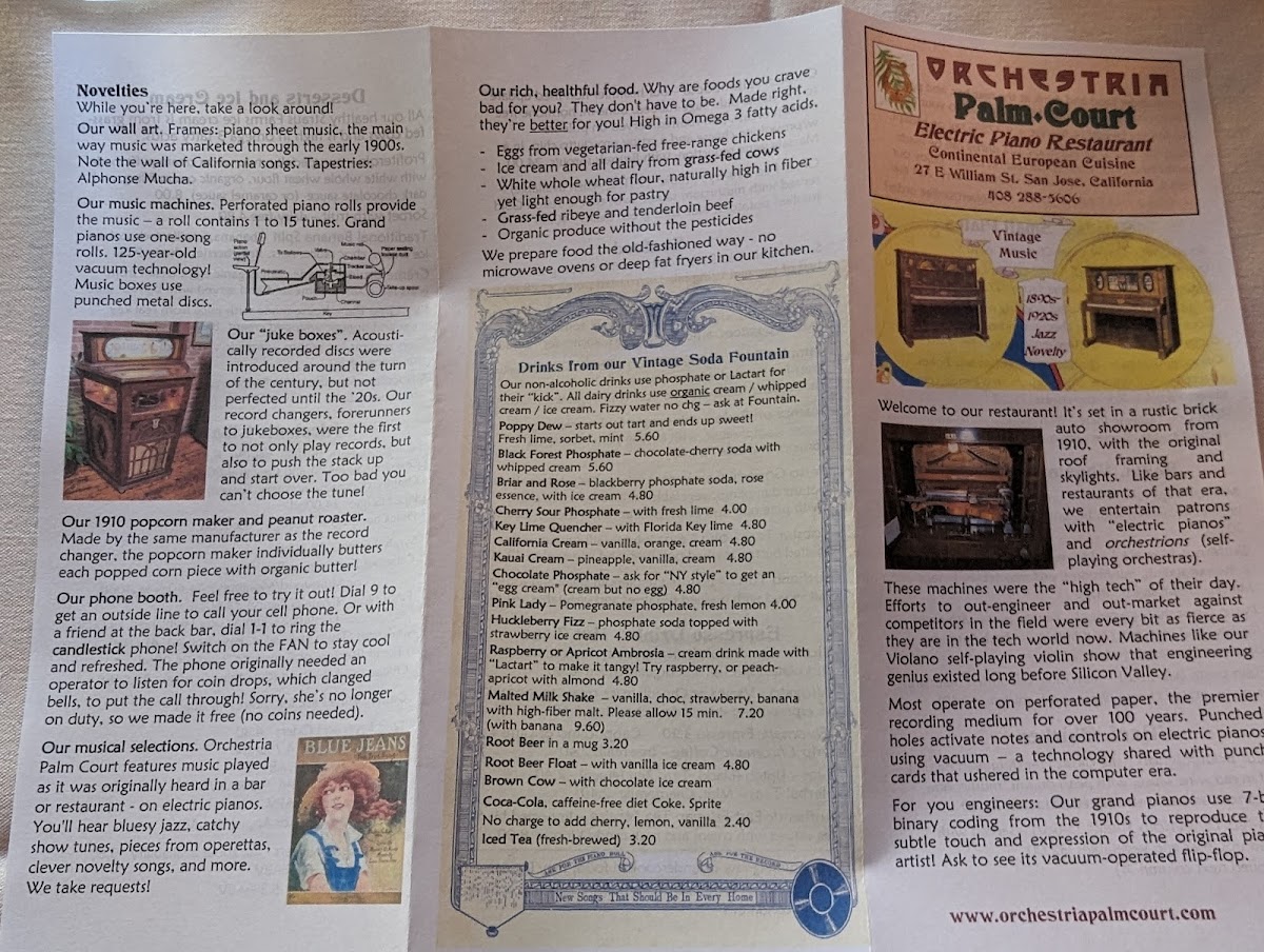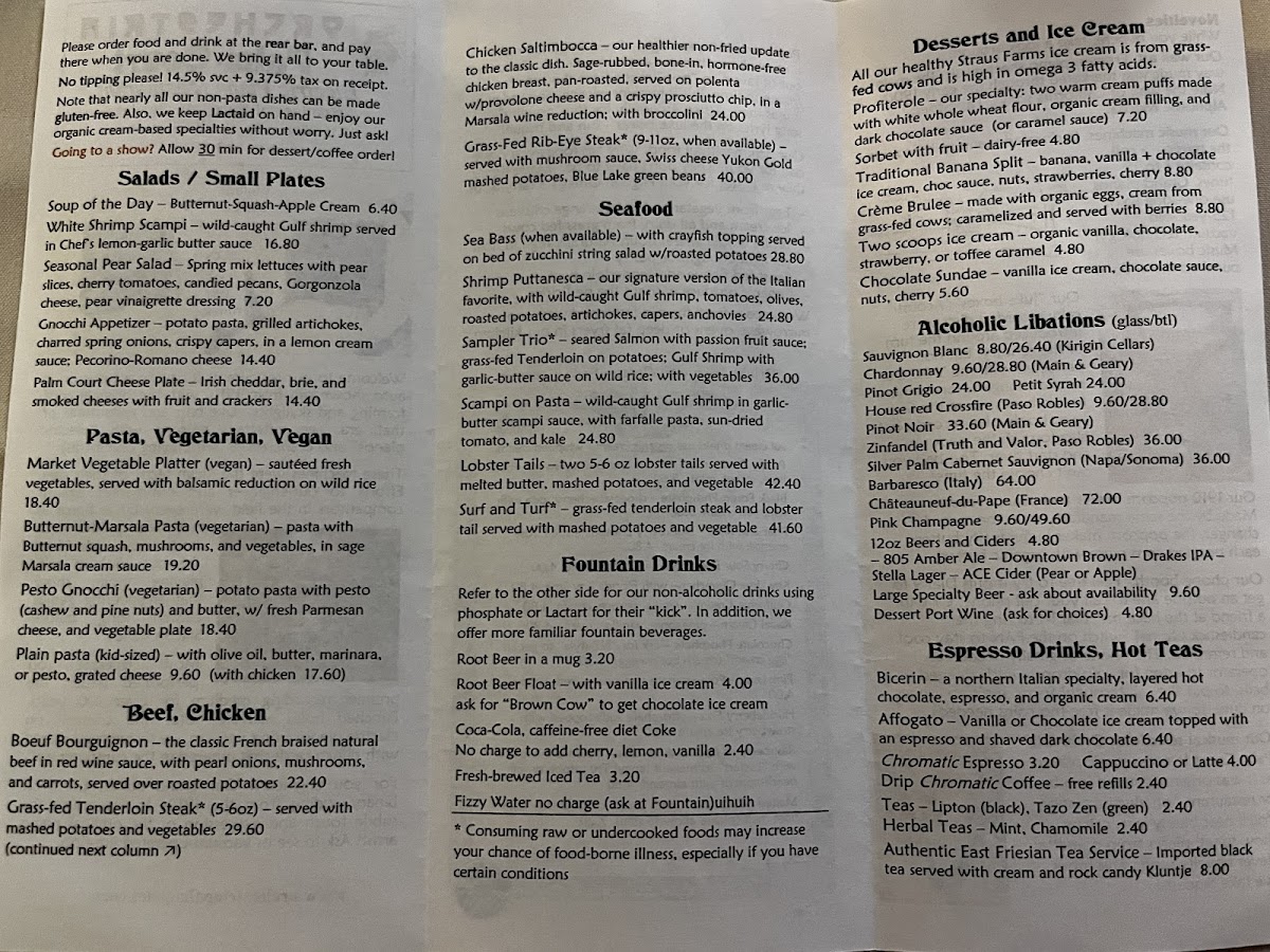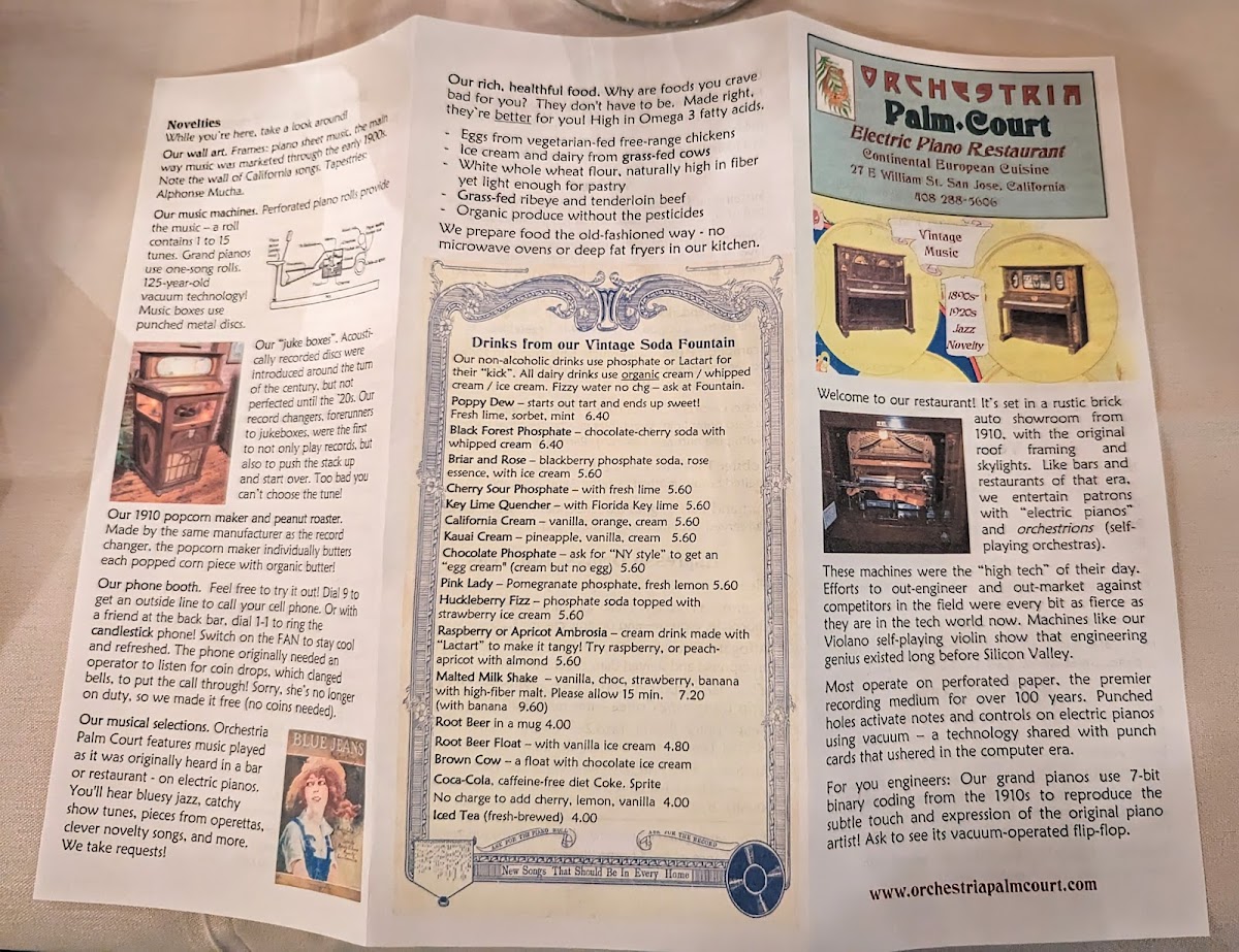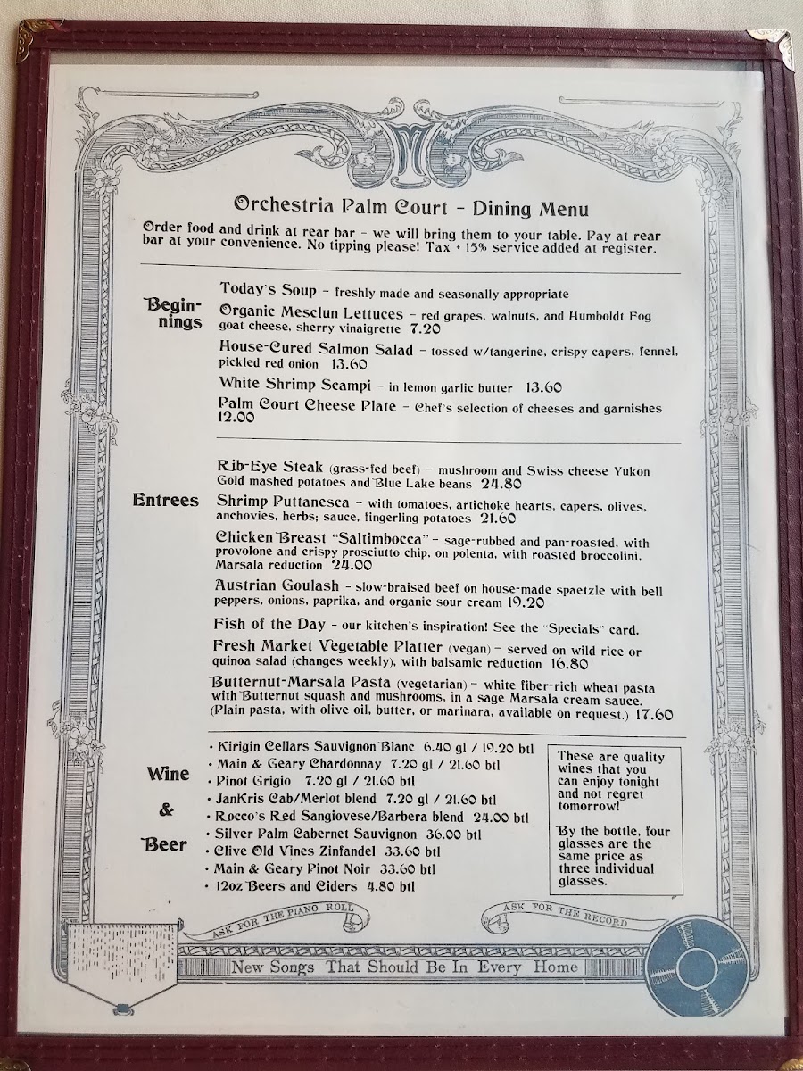 Welcome to Orchestria Palm Court Restaurant, an enchanting dining experience nestled in San Jose, California. This charming eatery marries nostalgia with modern flavors, boasting a menu that caters to diverse palates and dietary preferences.